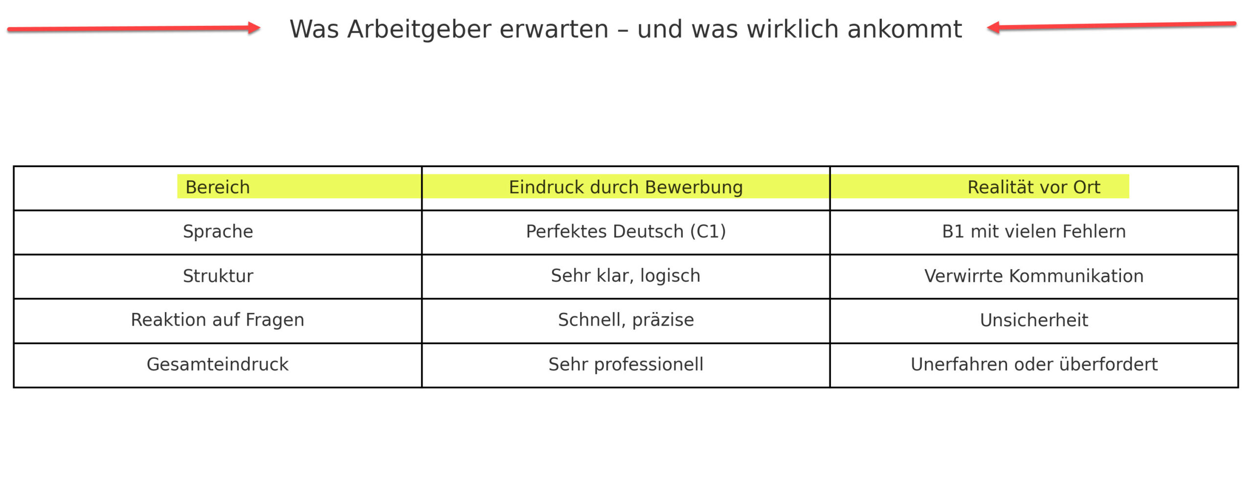 Immer mehr Menschen benutzen Programme wie ChatGPT, um Bewerbungen zu schreiben. Diese Programme helfen beim Formulieren und klingen oft sehr professionell. Doch: Wer zu perfekt schreibt, ohne die Sprache wirklich gut zu beherrschen, riskiert Absagen oder sogar eine Kündigung nach dem Start in Deutschland. 📌 Was ist das Problem? Wenn…